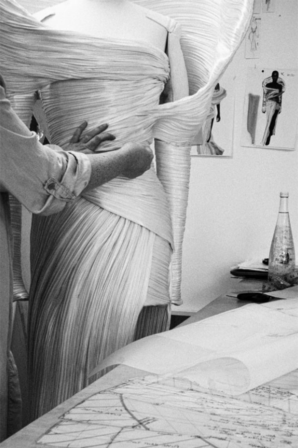"Le tissu est incroyable. Il ressemble à une duchesse, un peu métallique et aqueuse. Il est très moderne", a-t-il déclaré. "Ce sera une robe blanche, vraiment pure.