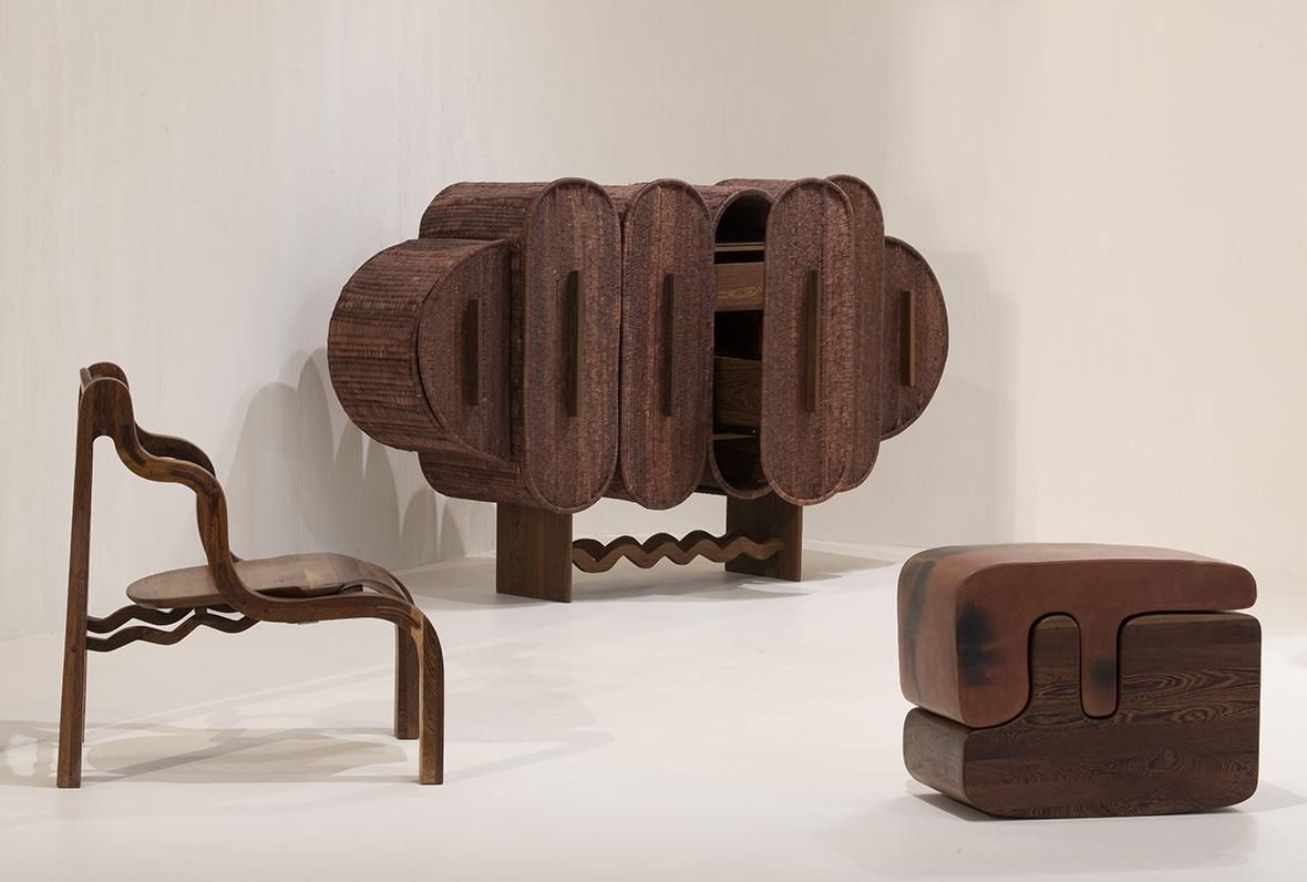 Kompa est une collection composée de dix meubles. Certaines pièces ont été réalisées par une seule et même personne, tandis que d’autres ont nécessité une collaboration supplémentaire entre les artisans pour être complétées. Deux œuvres de la collection font directement référence à la collaboration avec Fendi.