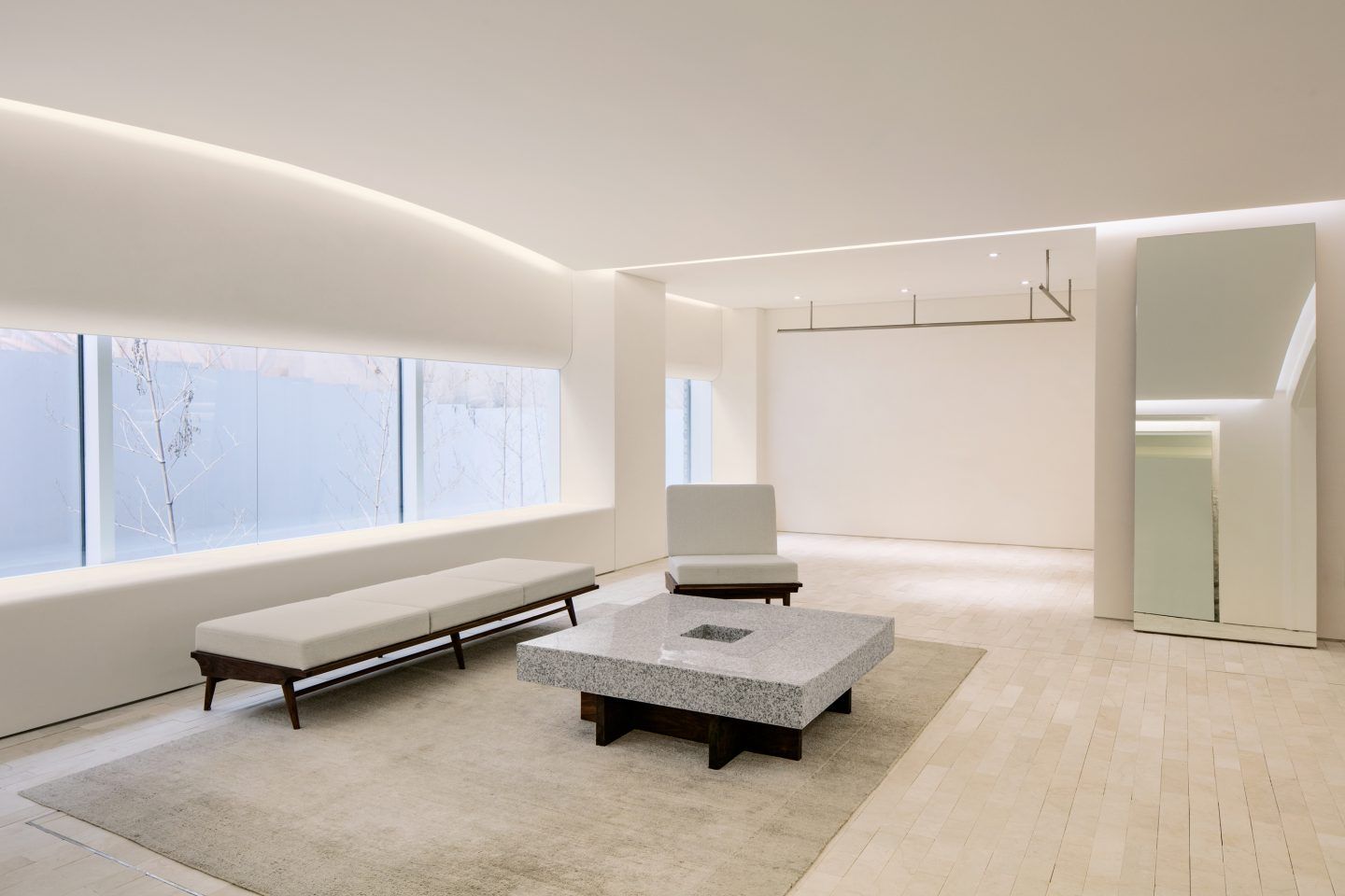 La marque coréenne de vêtements haut de gamme READY2WEAR ouvre une nouvelle boutique à Séoul. Les acheteurs seront immergés dans un univers minimaliste et épuré, à l’image de la qualité des produits proposés. Tons neutres, plafonds courbés, pierres brutes… sont inspirés du célèbre sculpteur Romain Constantin Brancusi. Une atmosphère subtile qui laisse chanter les matériaux à leur guise et crée une charmante expérience client.