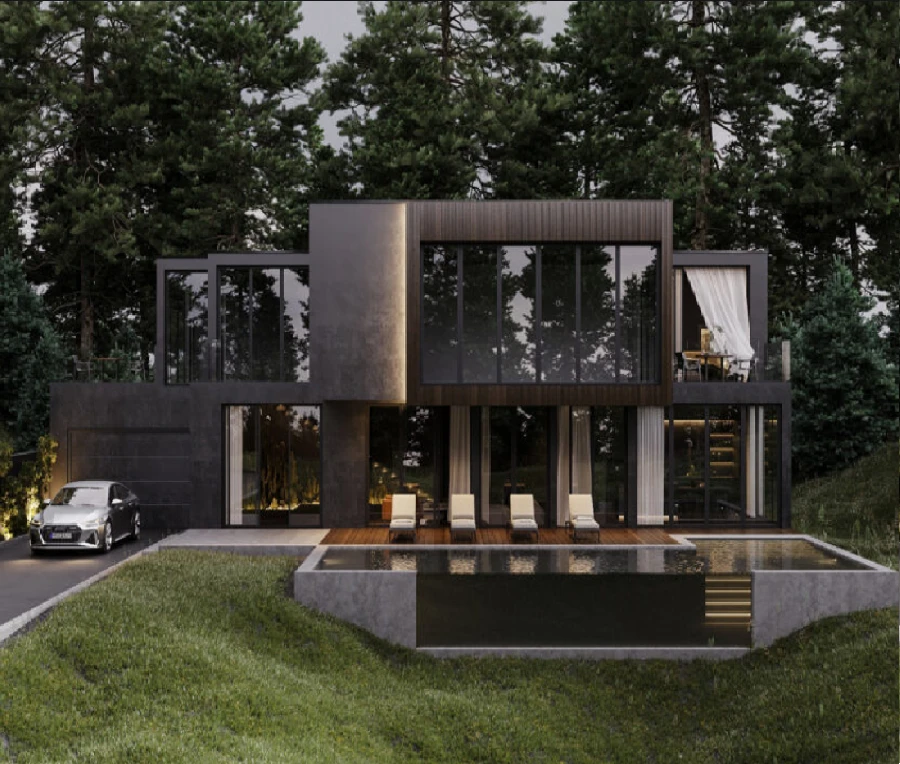 Les "Luxury Black Houses" ont fait leur première apparition aux Etats-Unis. Ces habitations sont typiquement des grandes structures sur plusieurs étages et sont généralement de couleur noire sur leurs façades extérieures ainsi que dans le développement de leurs intérieurs. Dans l’histoire de l’art et de l’architecture, on pense que le noir est une couleur gothique et obscure, mais grâce à de nombreuses sociétés d’architectes comme Snow Kreilich , le noir devient dans le monde de l’architecture, une couleur au paroxysme de l’esthétique chic et élégante.