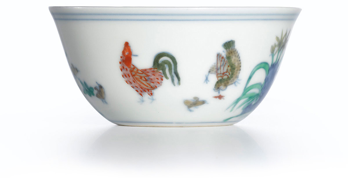 Le 8 avril 2014 lors d’une vente aux enchères à Hong-Kong, un record a été battu lorsqu’un milliardaire chinois a acheté un petit bol de la dynastie Ming datant de l’ère Chenghua (1465-1487) pour 26 millions d’euros, ce qui fait de lui le bol le plus cher du monde. Le milliardaire shanghaïen Liu Yi Qian est connu pour sa richesse, mais surtout pour ses musées. Il expose ses collections, et a choisi ce « Graal de l’art chinois » (des mots du vice-président de Sotheby’s Asie), un réel bijou historique et mythologique. Nicolas Chow d'ajouter « Il n'existe pas d'objet plus légendaire dans l'histoire de la porcelaine chinoise ». Il est dit que moins de 20 bols de cette facture existeraient dans le monde, dont quatre dans des collections privées. Parfaitement conservé il vous propulsera dans le passé sous l’ère Chenghua, une ère où l’art Ming était au paroxysme de son raffinement et de sa finesse. Ce bol octogonal à l'émail et au corps intacts est égayé d'un coq rouge, embelli par une poule et des poussins picorant dans un jardin de lys jaunes et de roses rouges. Kagni Kebe