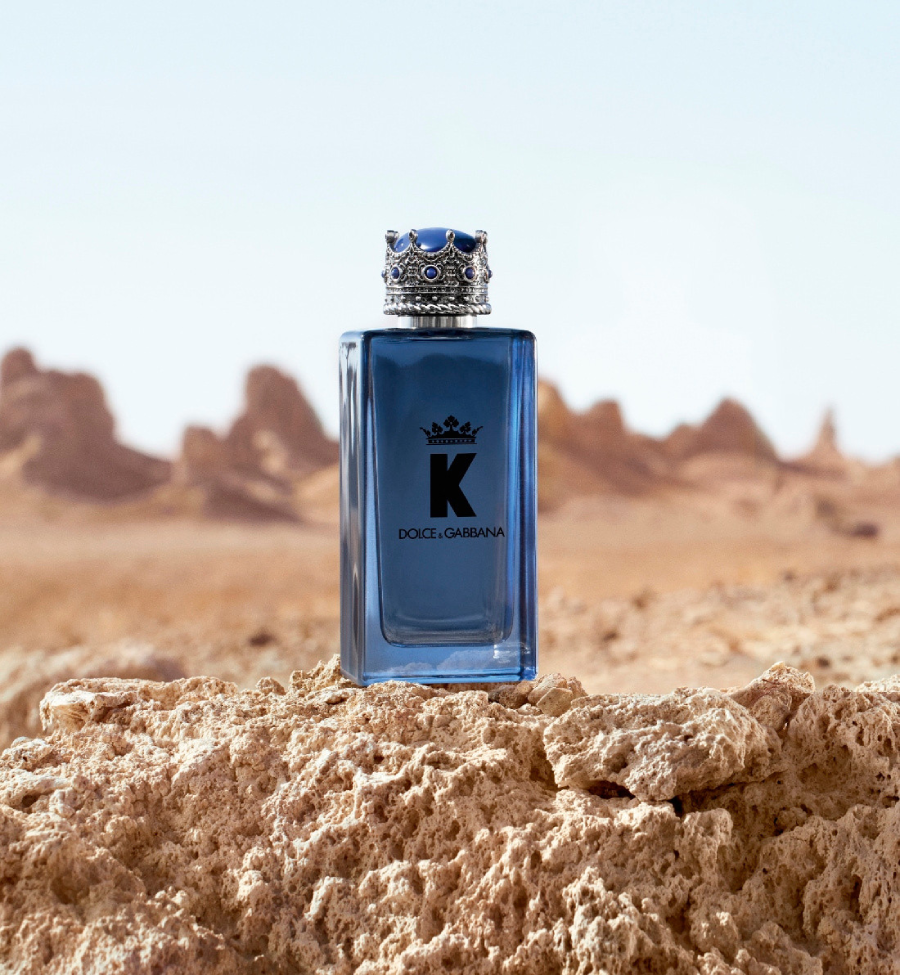L’iconique design du flacon de la fragrance d’origine conserve la même forme géométrique se déclinant, pour K by Dolce&Gabbana Eau de Parfum, dans une nuance bleu roi plus profonde. La couronne qui surmonte le flacon est habillée d’une patine en argent bruni, qui exalte le bleu raffiné de la coupole de lapis-lazuli.