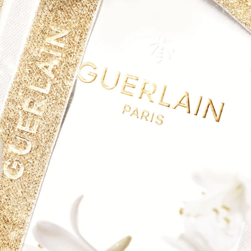 L'écrin c'est l’élégance du blanc, embossé du symbole de la Maison : l’abeille et du nom de Guerlain en lettres d’or. Le papier de soie est délicatement parsemé d’abeilles dorées. Le ruban est la ponctuation finale pour faire scintiller chaque écrin Guerlain.