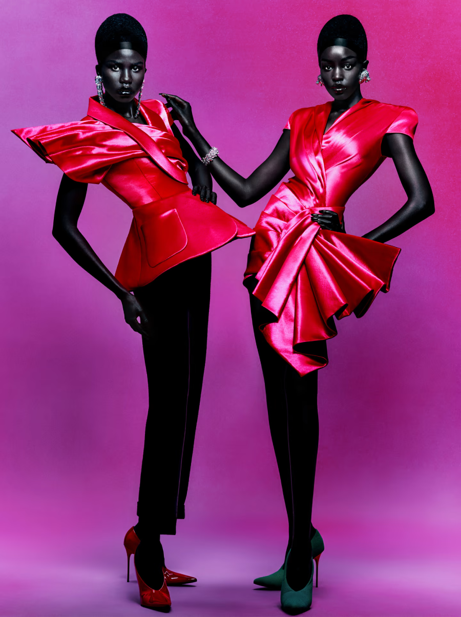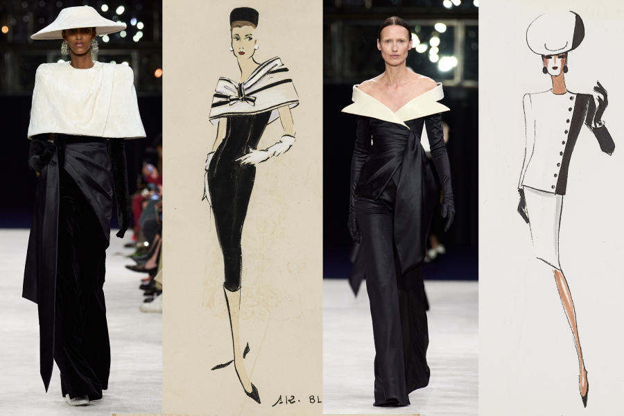 Explorant le tailoring parisien et les volumes architecturaux, la collection est bâtie sur les principes du New French Style avant-garde et désormais classique de Pierre Balmain.