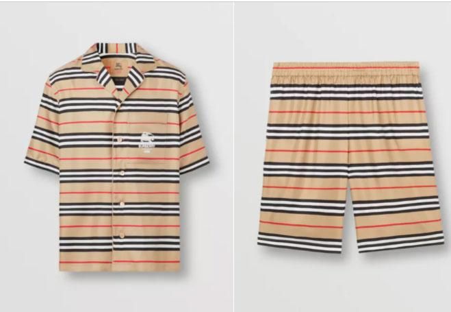 La chemise de style pyjama est en soie et à rayures iconiques. Une matière douce et noble ! Elle est vendue au prix de 890 euros. Le short est en sergé de soie et lui aussi à rayures iconiques !