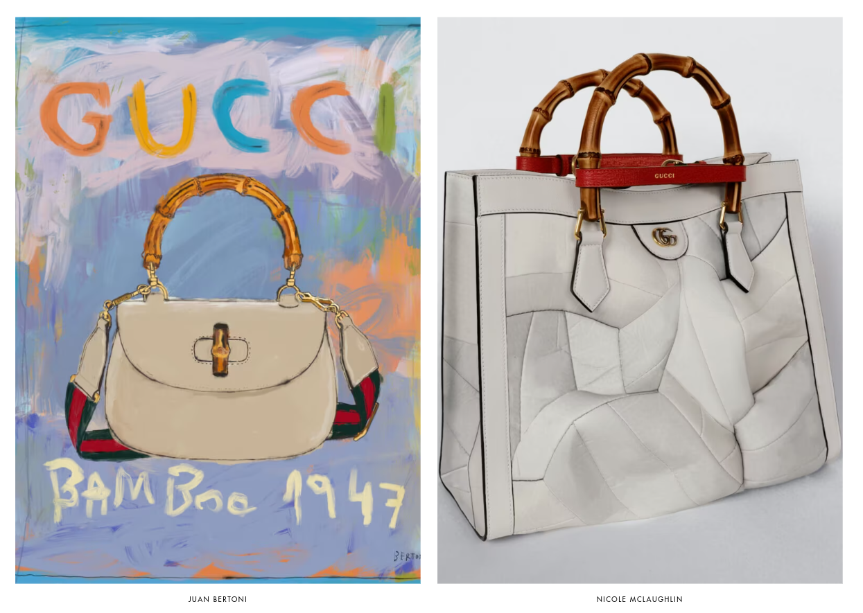 Le modèle de sacs à main Gucci Bamboo 1947 signé Alessandro Michele est présenté dans des vidéos, images et illustrations imaginées par de talentueux artistes et photographes venus du monde entier, qui ont été invités à partager leur vision personnelle de ce modèle emblématique.