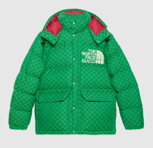À 2 300 euros, ce manteau en duvet signé The North Face Gucci est la pièce phare de cette collection, celle que tout le monde s'arrache.