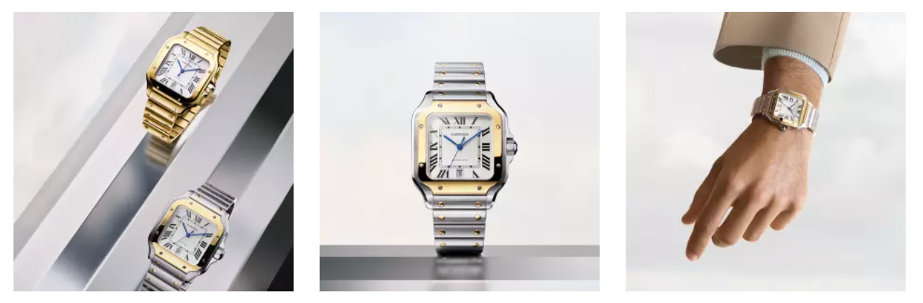 Créée en 1904, la montre Santos repose sur le concept de forme, le goût du minimalisme, la précision des proportions et le souci du détail.
