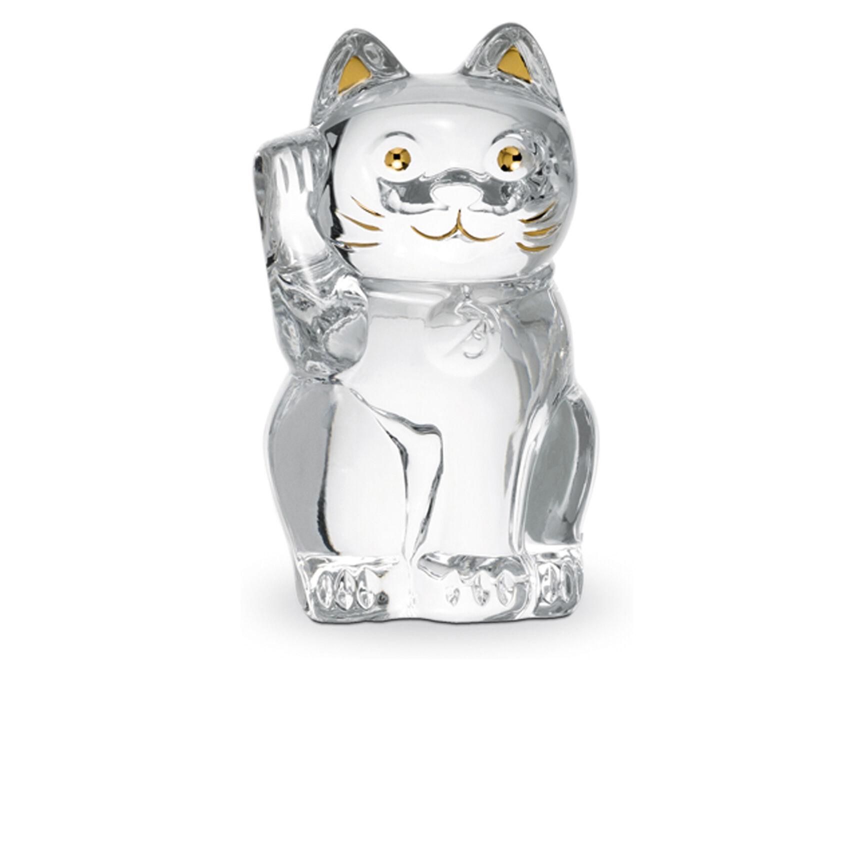 Ce magnifique chat porte-bonheur en cristal clair, Maneki-neko en japonais, lève la patte droite pour attirer la chance et la fortune.