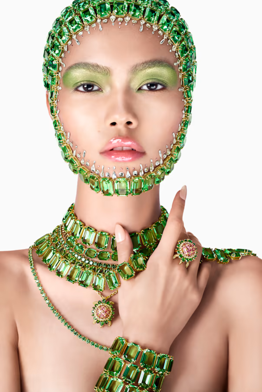 Concrètement spectaculaire, la tortue Swarovski, emblème de joie et de la beauté de la transformation, vous séduira. Le mariage du vert et du rose propose une ode à la richesse d’une élégance infinie.