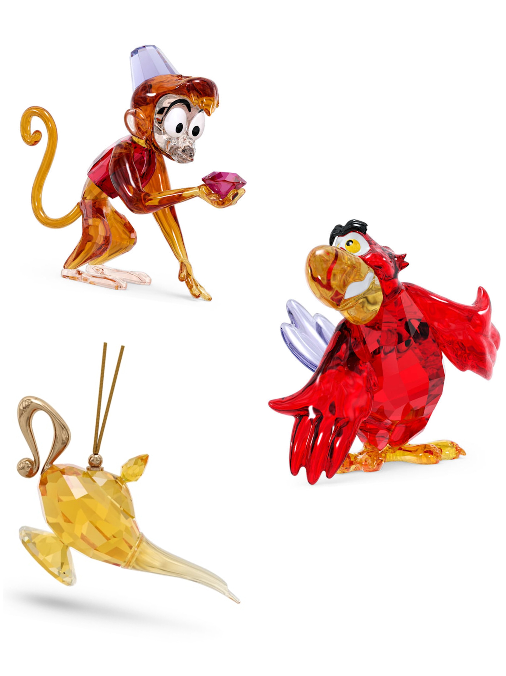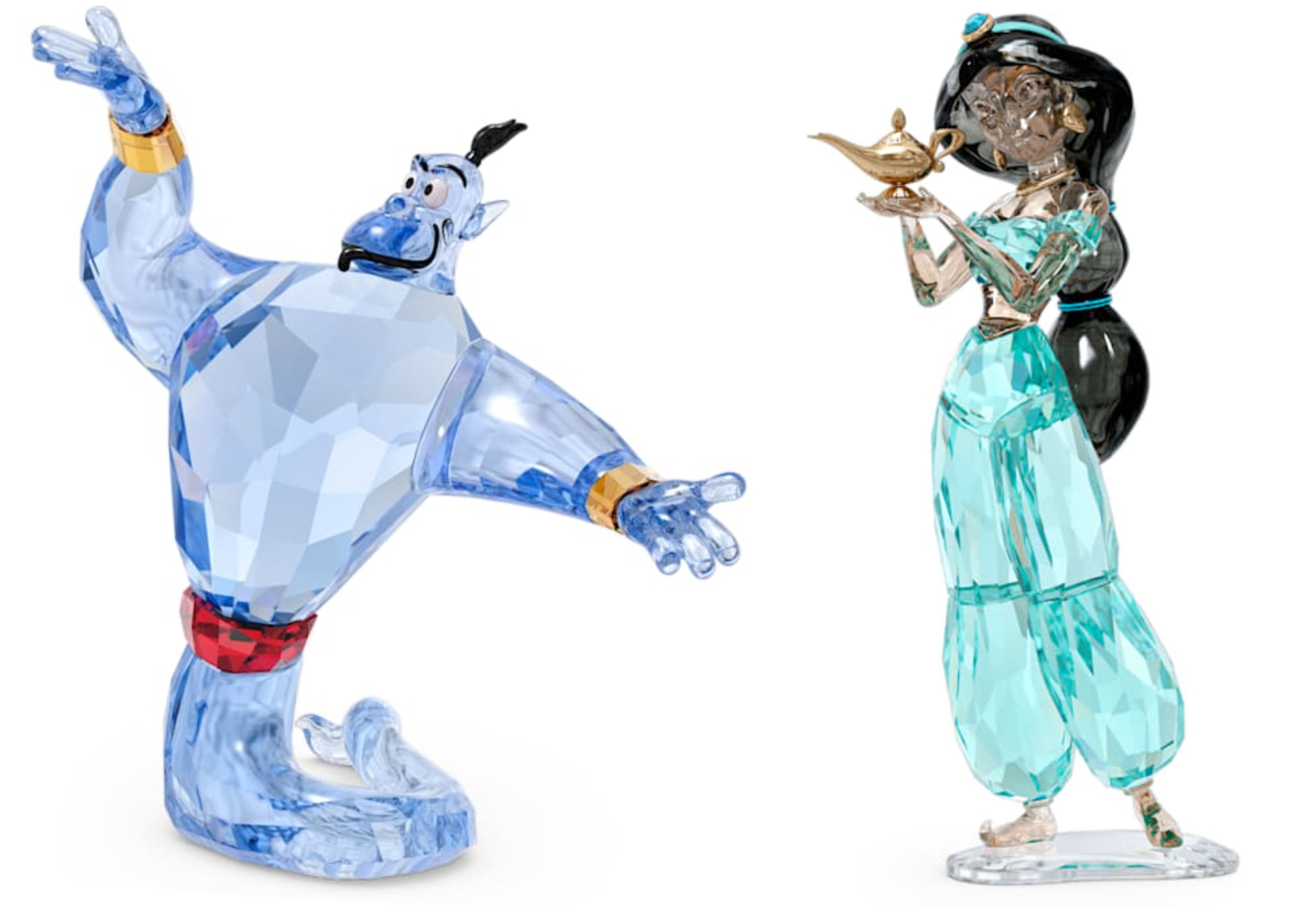 Eh oui ! Aujourd’hui, les feux des projecteurs sont braqués sur le monde merveilleux d’Aladdin !  Une gamme féerique de décorations en cristal. Tout juste créée en 2022 pour célébrer le 30 ème anniversaire du dessin animé mythique, chaque personnage prend vie dans un cristal taillé avec précision et aux couleurs intenses ! Six produits tout aussi brillants les uns que les autres : le Génie, la Princesse Jasmine, Abu, la Lampe Magique et Aladdin Lago. Toutes faites avec une centaine de facettes de cristal taillé avec expertise et minutie ! Un travail de magicien !