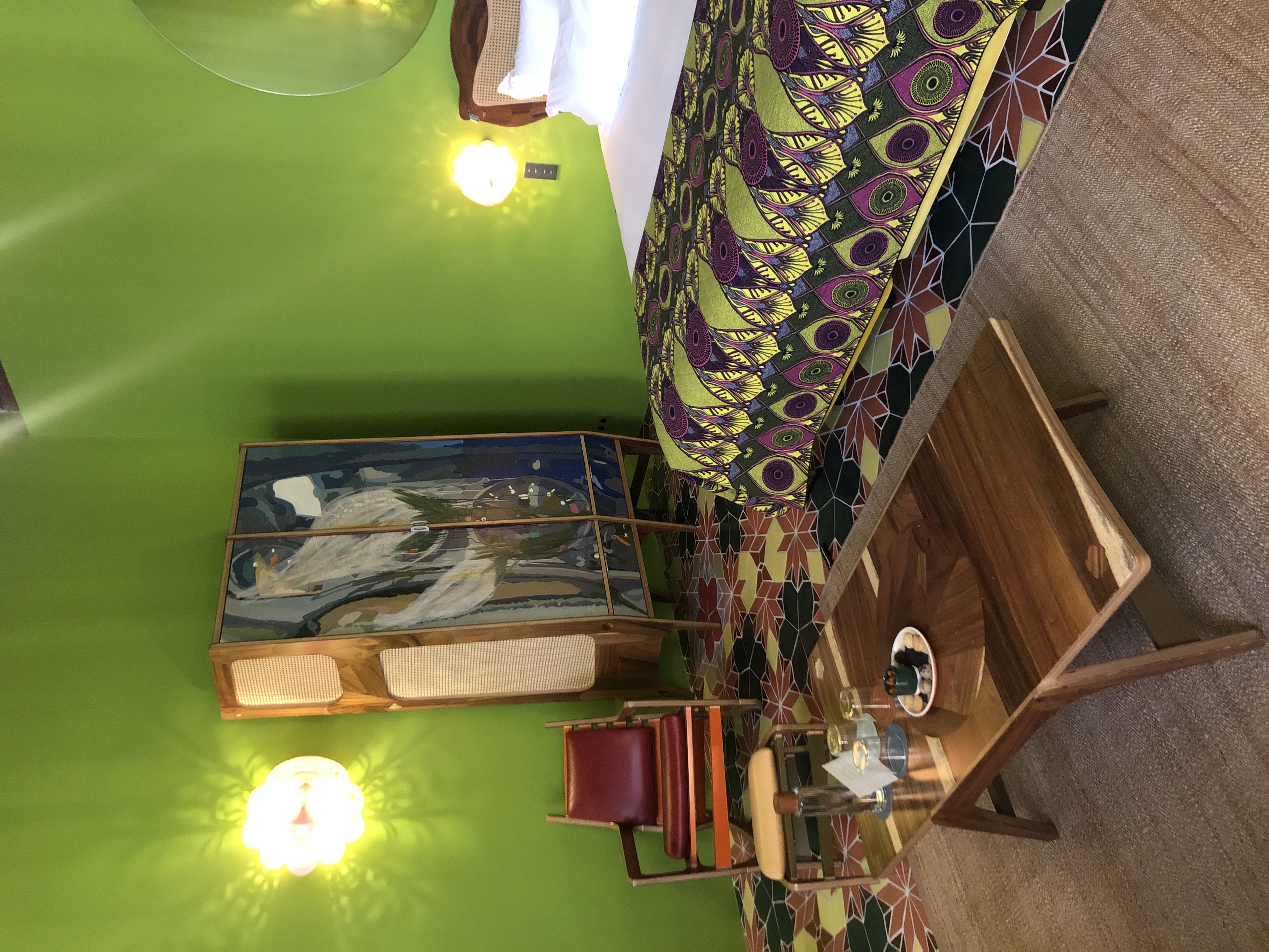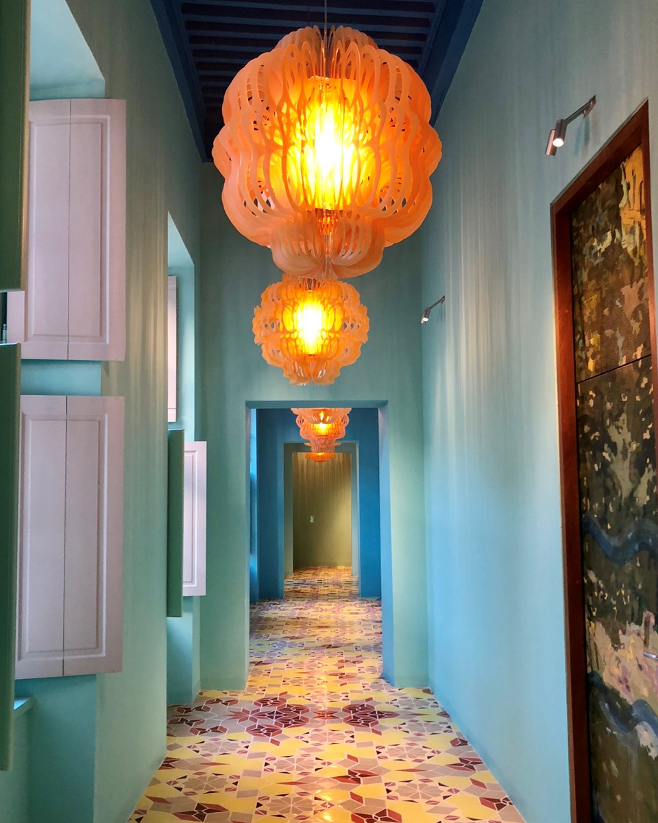 C’est en poussant la porte de l’Arlatan que l’on prend véritablement conscience du coup de foudre à l’origine du lieu. Un coup de foudre artistique entre la propriétaire et le décorateur d’intérieur Jorge Pardo, un artiste cubain décomplexé, exilé au Mexique. Dès l’arrivée, une profusion chromatique, un déferlement de couleurs et toujours la lumière en Guest star.